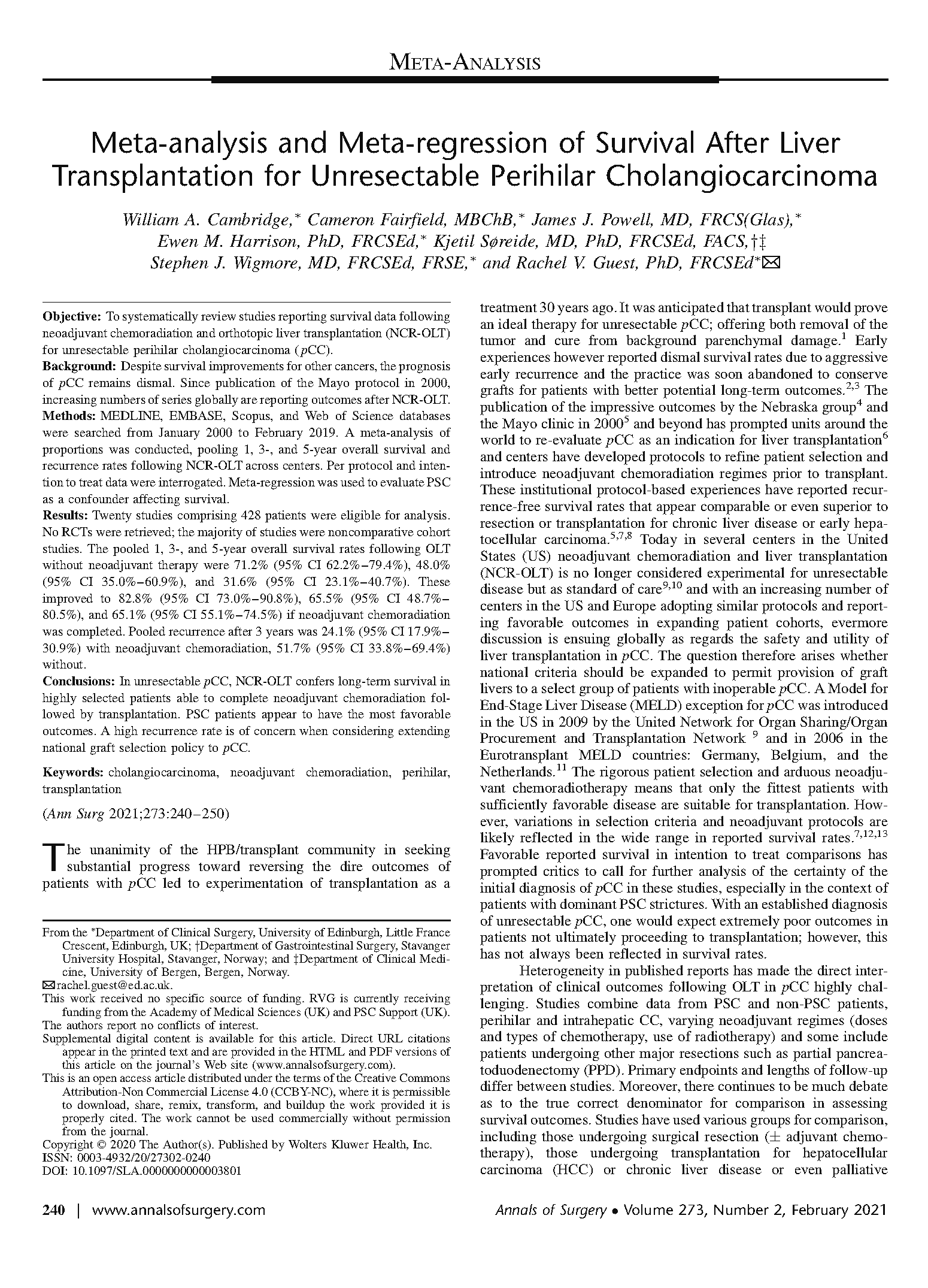 Meta-Analysis of studies examining survival outcomes following liver transplantation for unresectable perihilar cholangiocarcinoma. We show that from the published data the best outcomes are seen in patients with Primary Sclerosing Cholangitis (PSC) and in patients who manage to complete neoadjuvant chemoradiotherapy prior to transplantation.